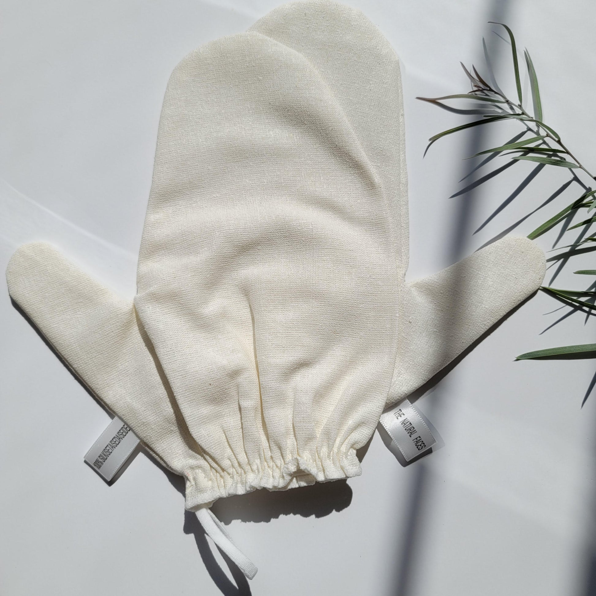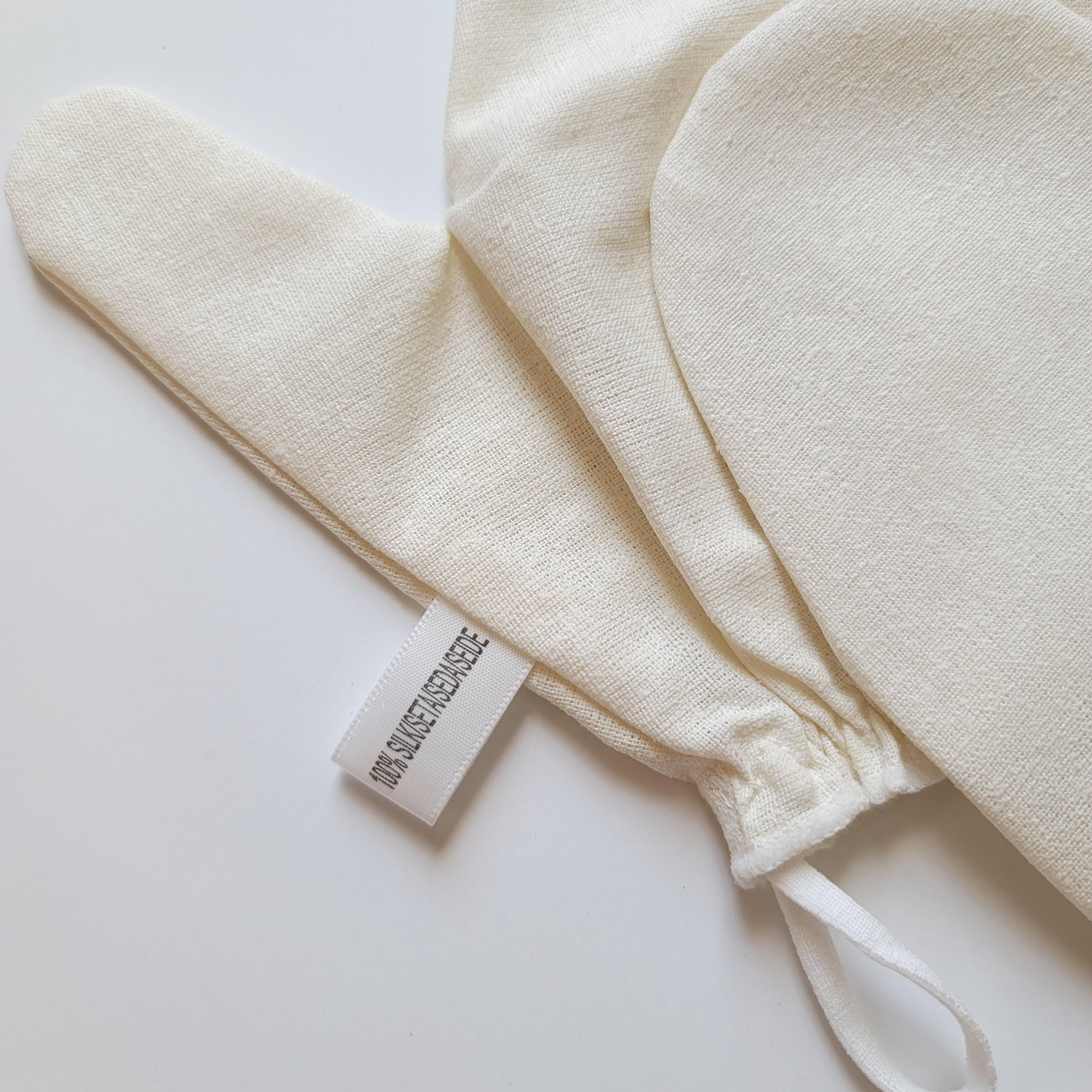 Set of two 100% raw silk exfoliating / dry brushing gloves for body and face.